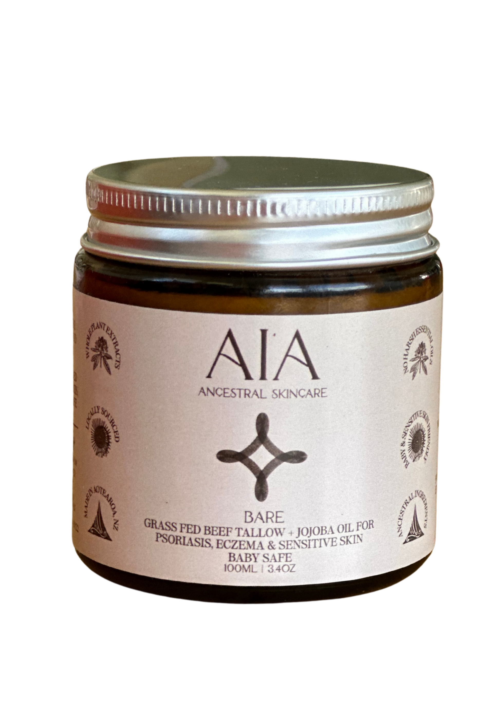 The Bare - Tallow Whip is a blend of Grass-fed Beef Tallow and Organic Unrefined Jojoba Oil, nothing else is added. It works as a barrier cream to deeply moisturise dry skin conditions that have symptoms of dry and flaky skin.